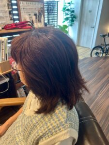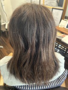 薬剤の使い分けがなんとも難しいところですが、毛先は弱い薬剤をゆっくり効かせます。